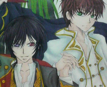 そんなわけで、悔し紛れにギアスなしバージョンの絵をはってみる(笑)(リンクは切っちゃいました)…これでもちょっと黄緑より緑に近いよね…。良く見ると表紙とはあちこち色味が違う…ルルのマント裏が朱色になってるよ表紙…(比べれば比べるほど落ち込む罠)……塗りっぱなしで仕上げもちゃんとできてないし……あっ、塗り残しまであるっ(ガーン)