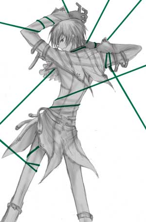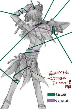 で、見えない鎖をこれから書き足し。都合上、見えない部分のズボン(尻部分)を書いてます。